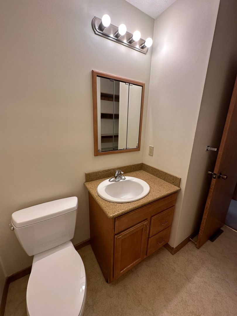 Second floor has both bedrooms, bathroom. Closet at the top of the stairs. Both bedrooms have vanities in them. Nice closet space too.